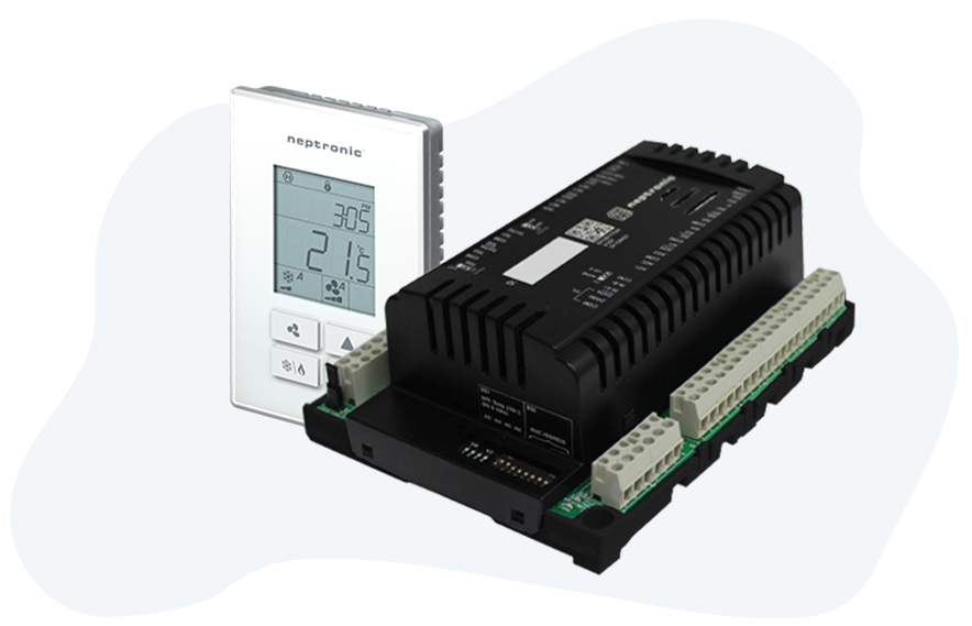 El Neptronic EFCB es un controlador de fan coil de última generación que combina inteligencia, flexibilidad y eficiencia energética en un diseño compacto.